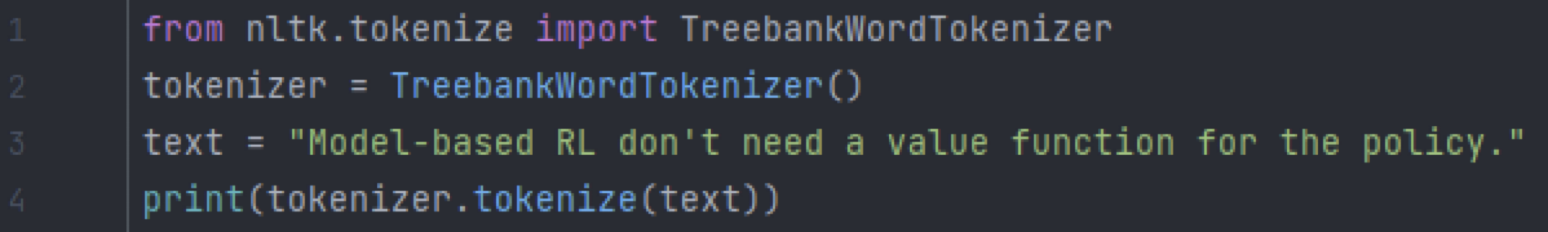 3) 표준 토큰화: Treebank Tokenization (예2의 해결방법)