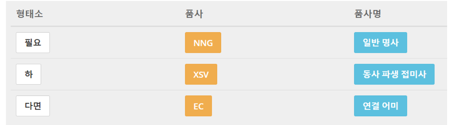 - 자립 형태소 : 명사, 수사, 부사, 감탄사