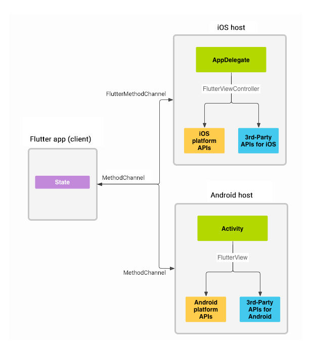 - Flutter에서는 MethodChannel을 사용하여 네이티브 코드에 메서드를 호출하거나 네이티브 코드에서 결과를 Flutter로 반환할 수 있습니다.