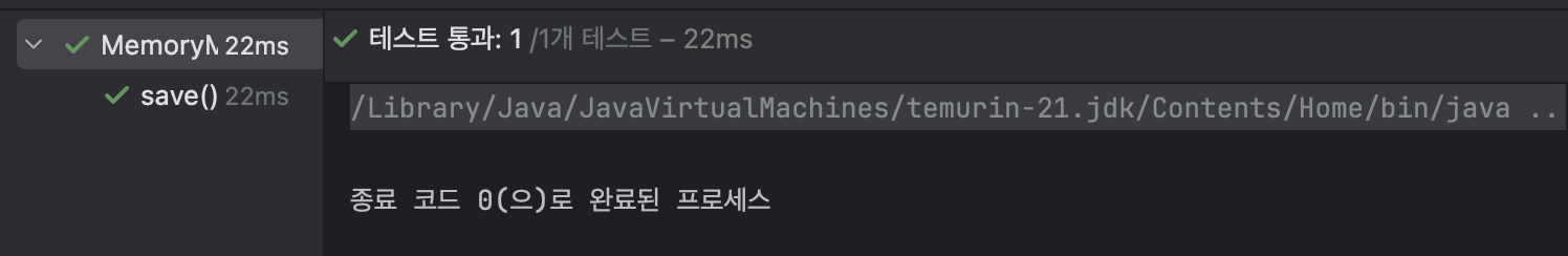 - save(), findByName(), findAll() 각각 돌리면 테스트 성공을 하지만,